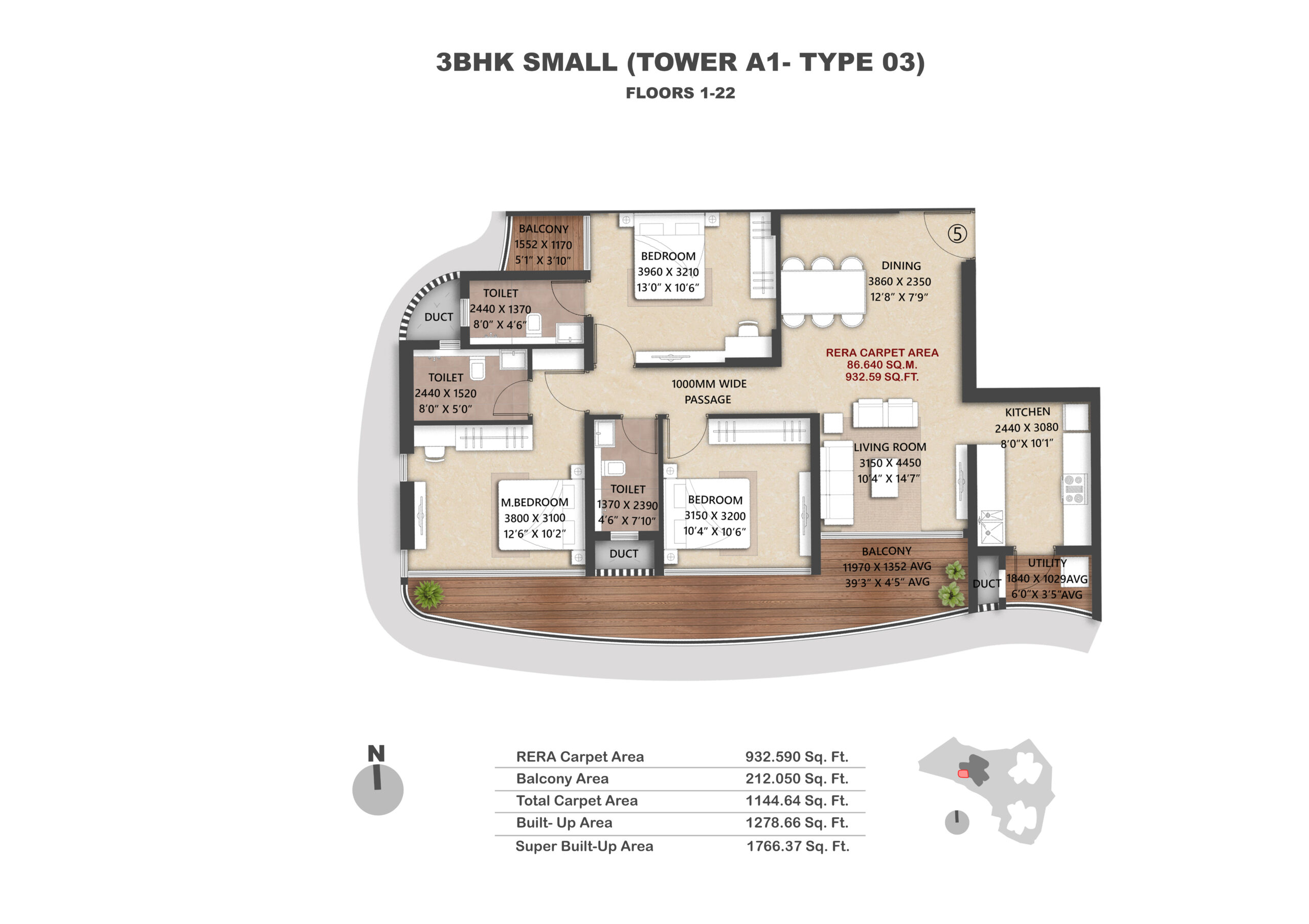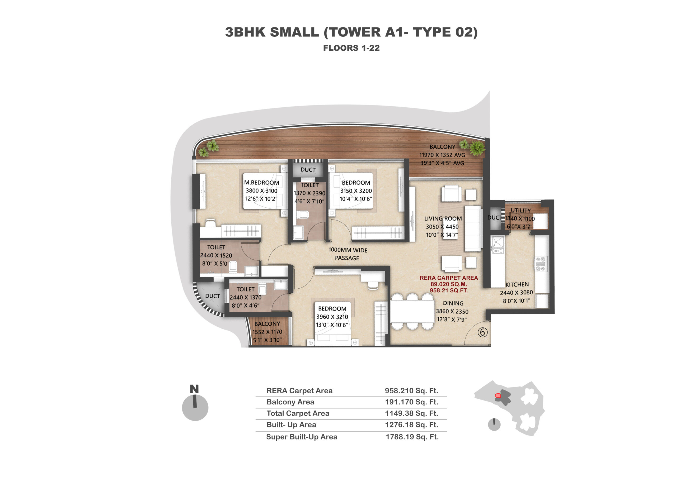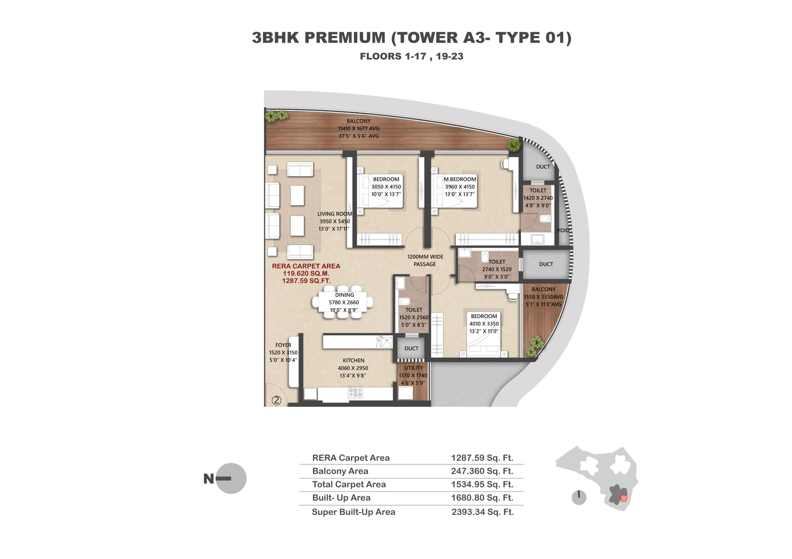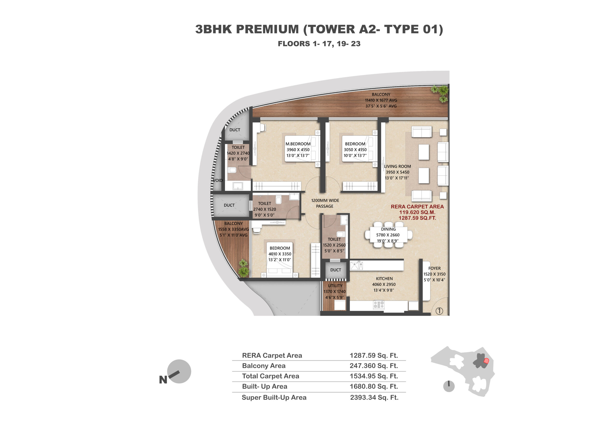 Tower 2 of Amani is divided into 6 units with lively 3-bedded occupancies with expansive carpet areas, across 1-17 and 19-23 floors.