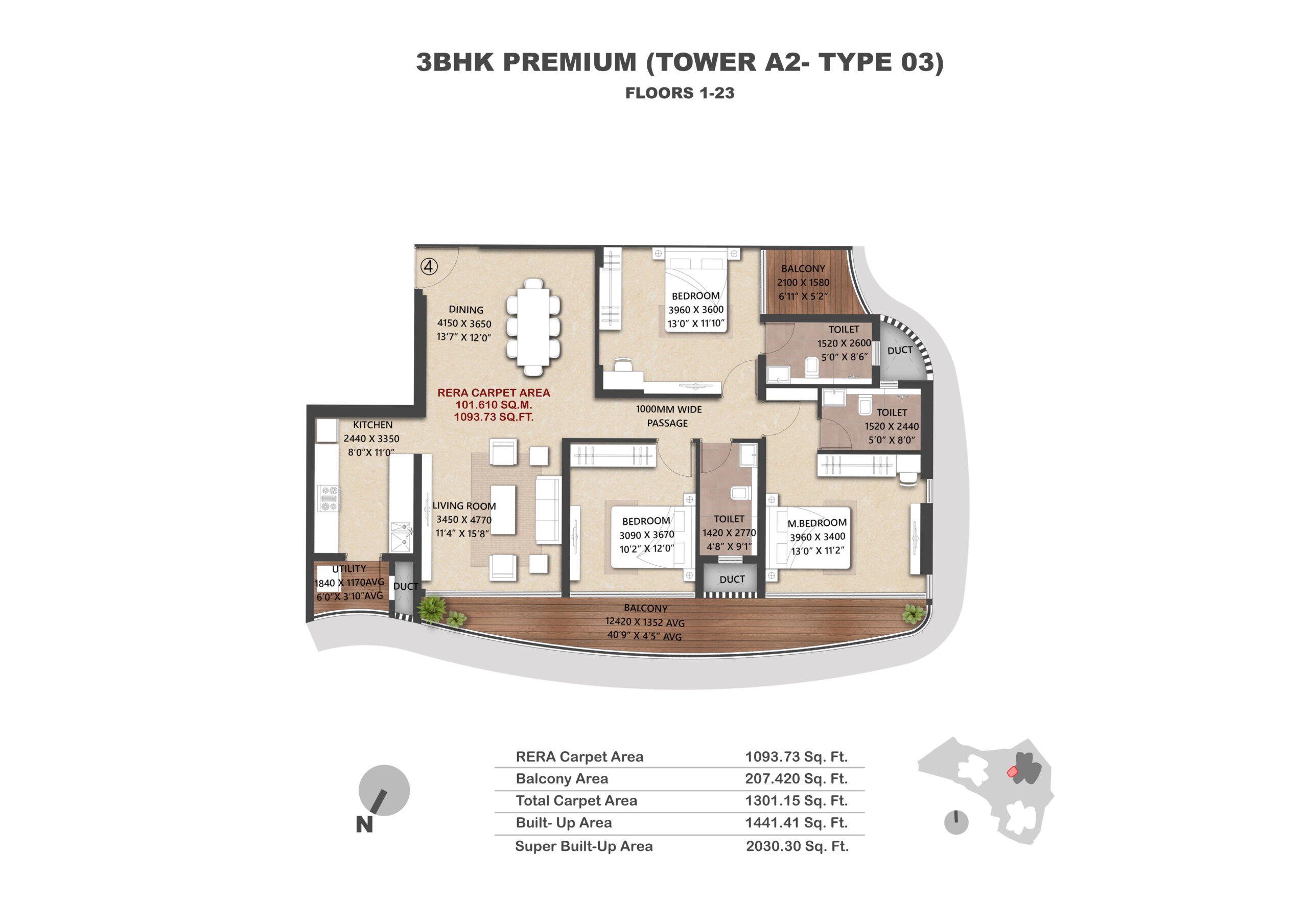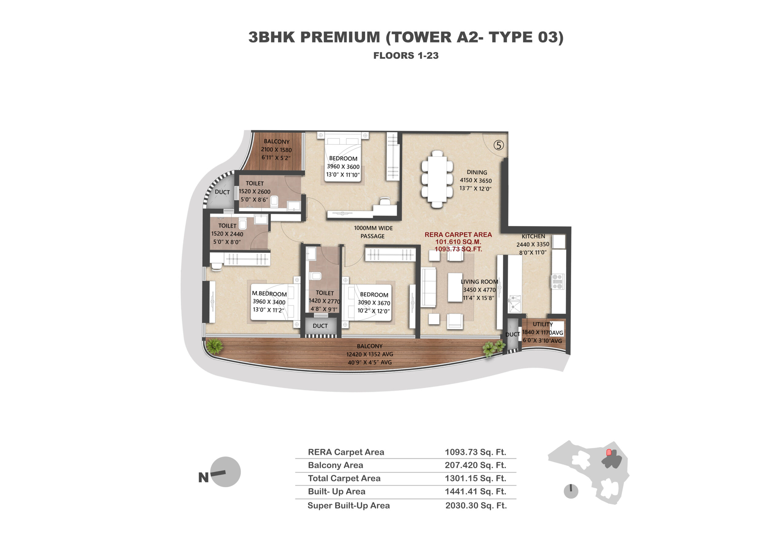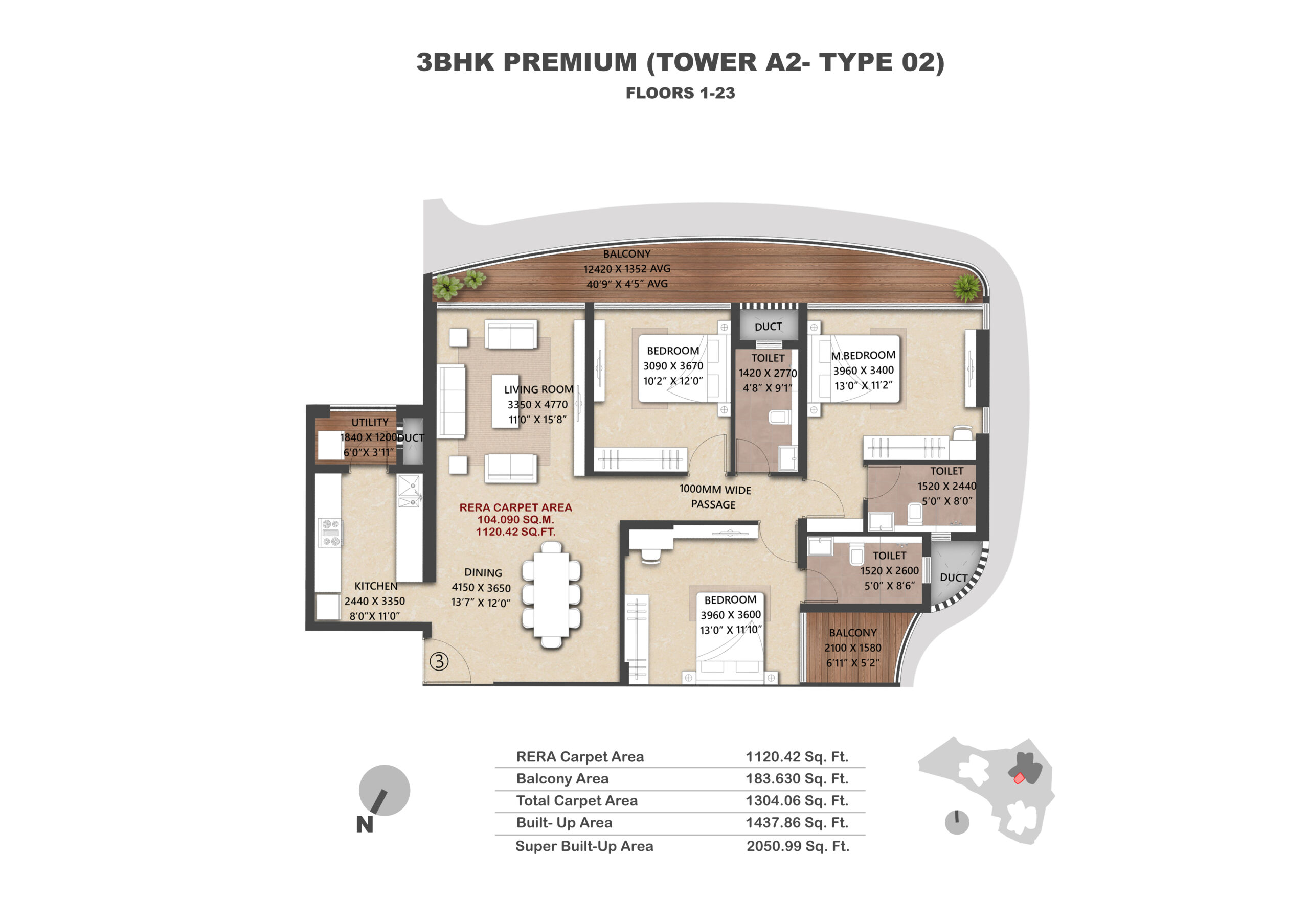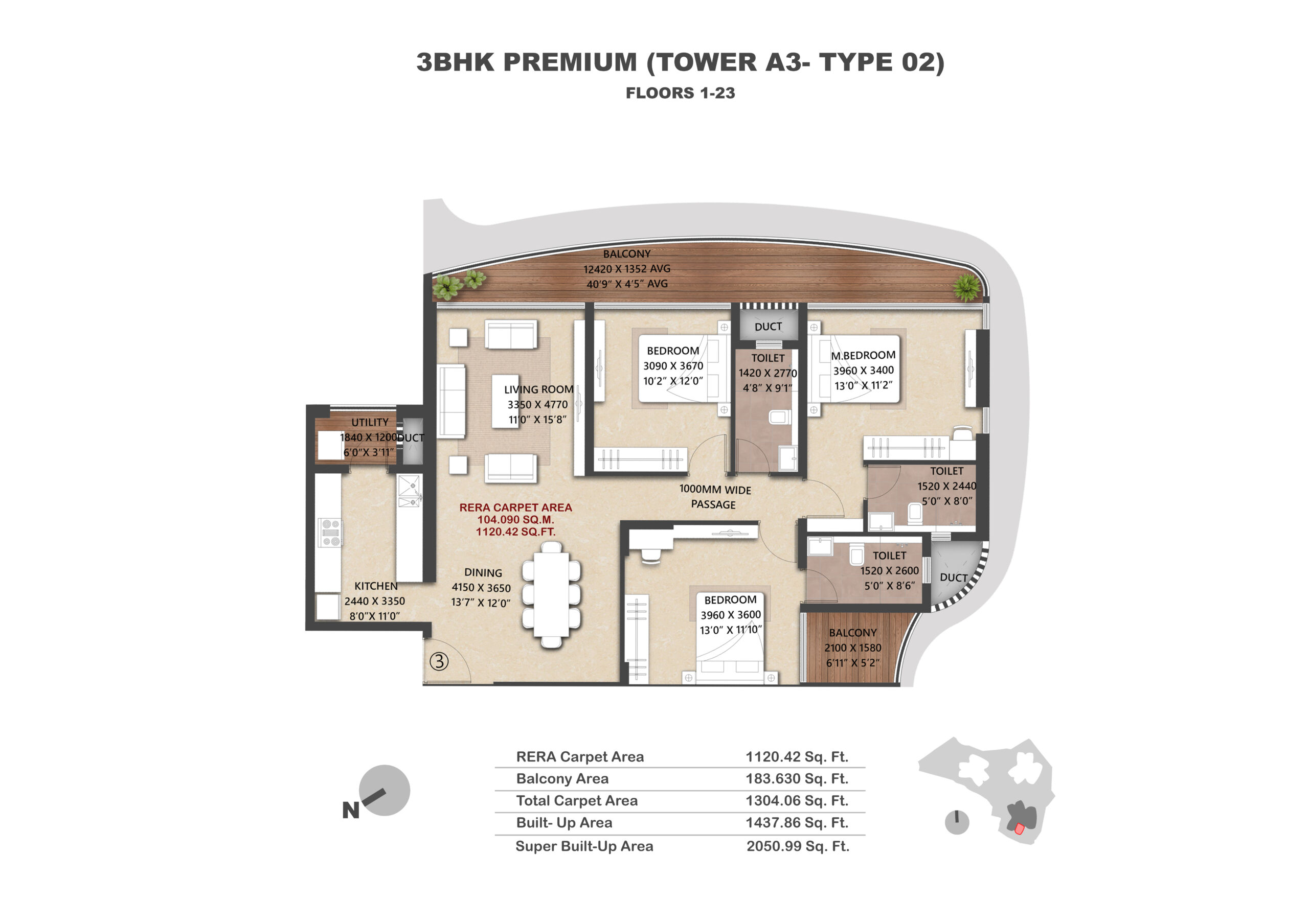 connectivity. These elegantly designed 3BHK apartments embody the vision of renowned architect Sanjay Puri, with lush, nature-inspired landscapes crafted by Thailand’s Landscape Tectonix, bringing a unique harmony of modern luxury and natural serenity.