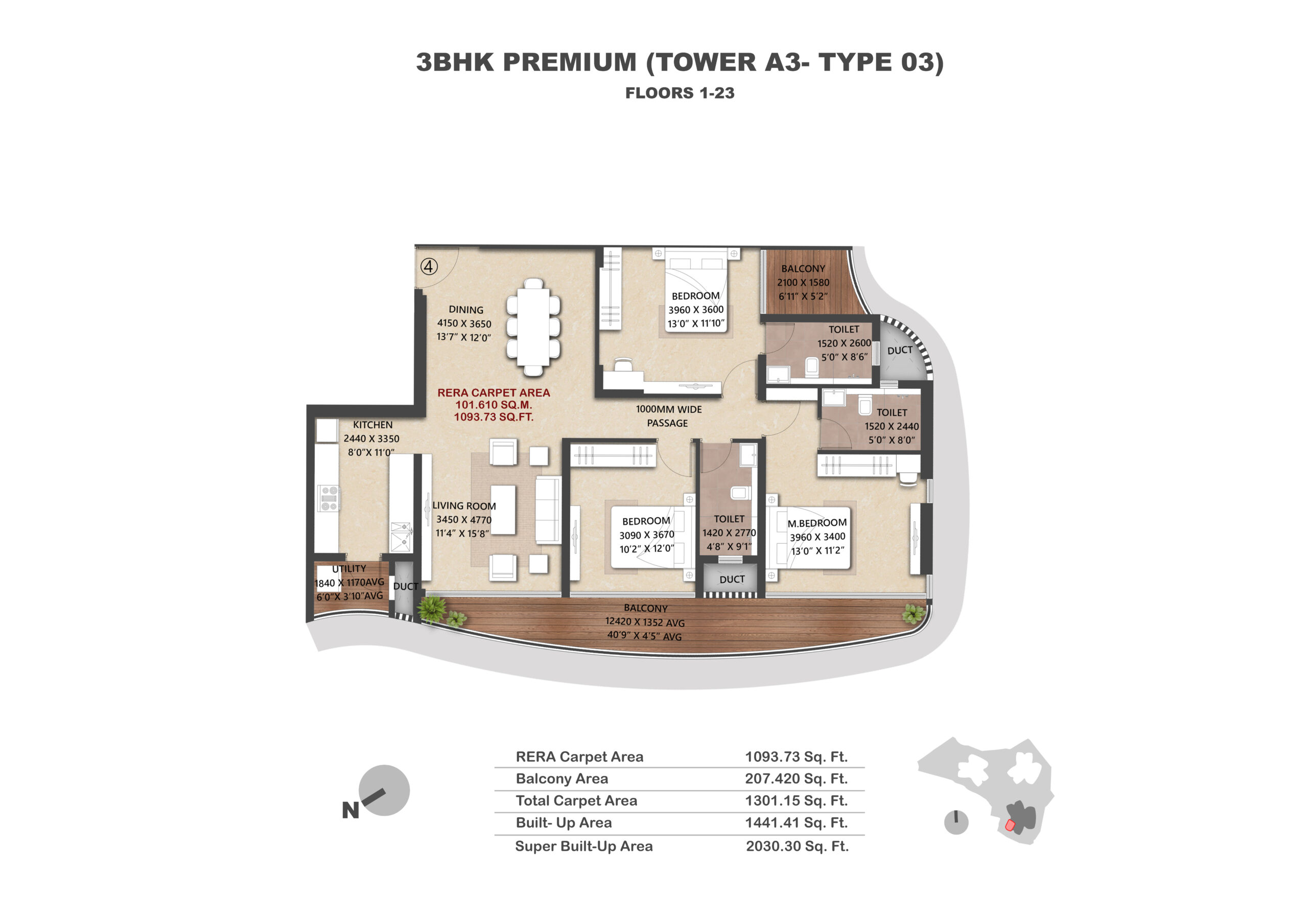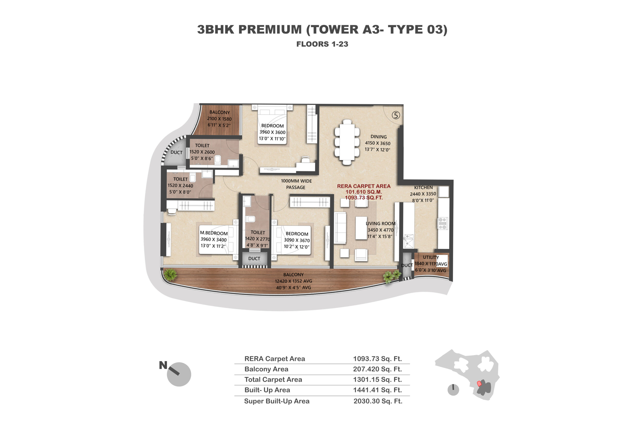 Tower 3 of Amani is spread over 6 units with abundant 3-bedded homes built to give you a premium living experience, across 1-17 and 19-23 floors.